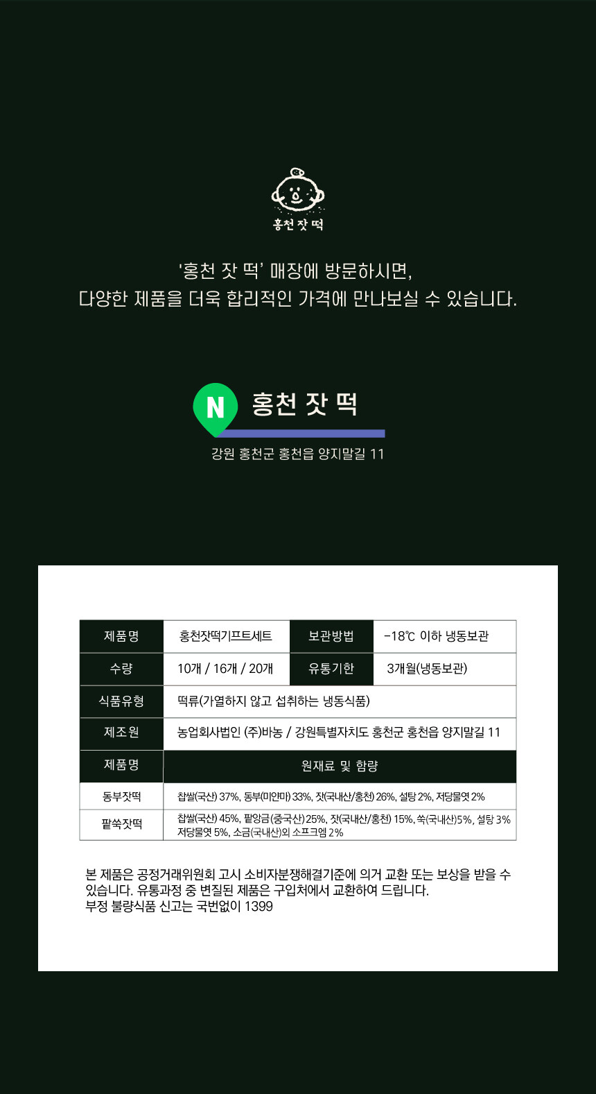 • 바농 홍천 잣 떡 찹쌀떡 20봉 상품번호 : 100039