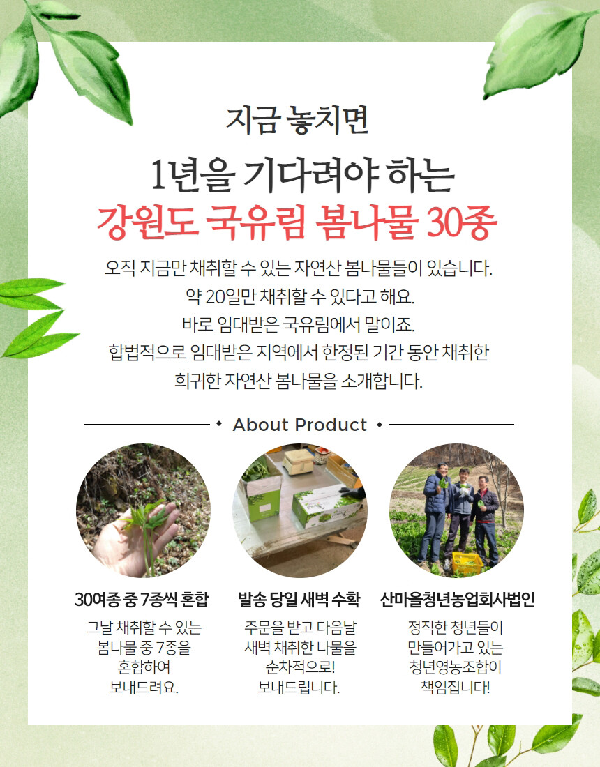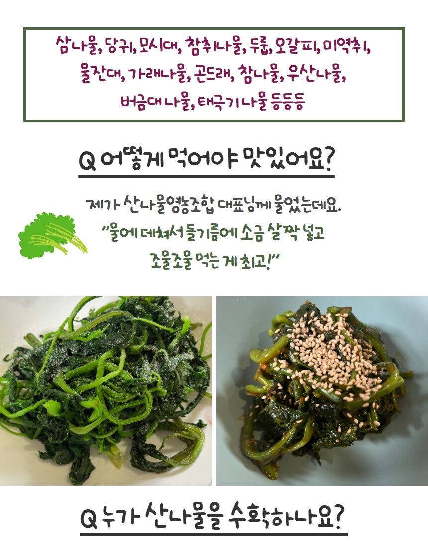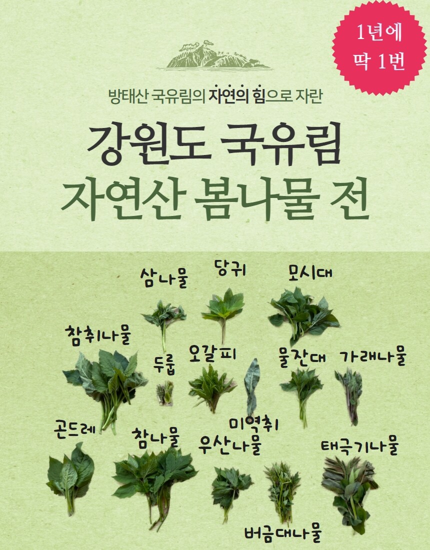4월말 첫출고 예정 강원도 홍천 혼합나물 자연산나물 1kg
