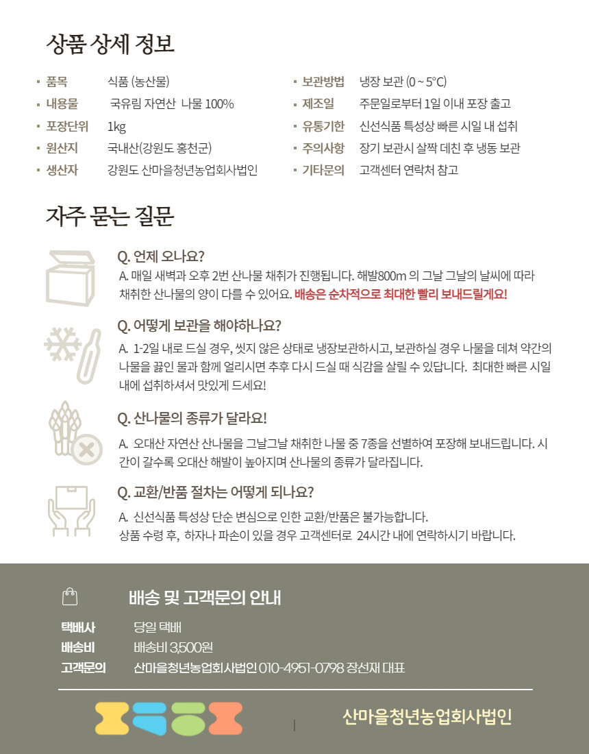 상품구성 30여종 자연산 산나물 중 7종 혼합