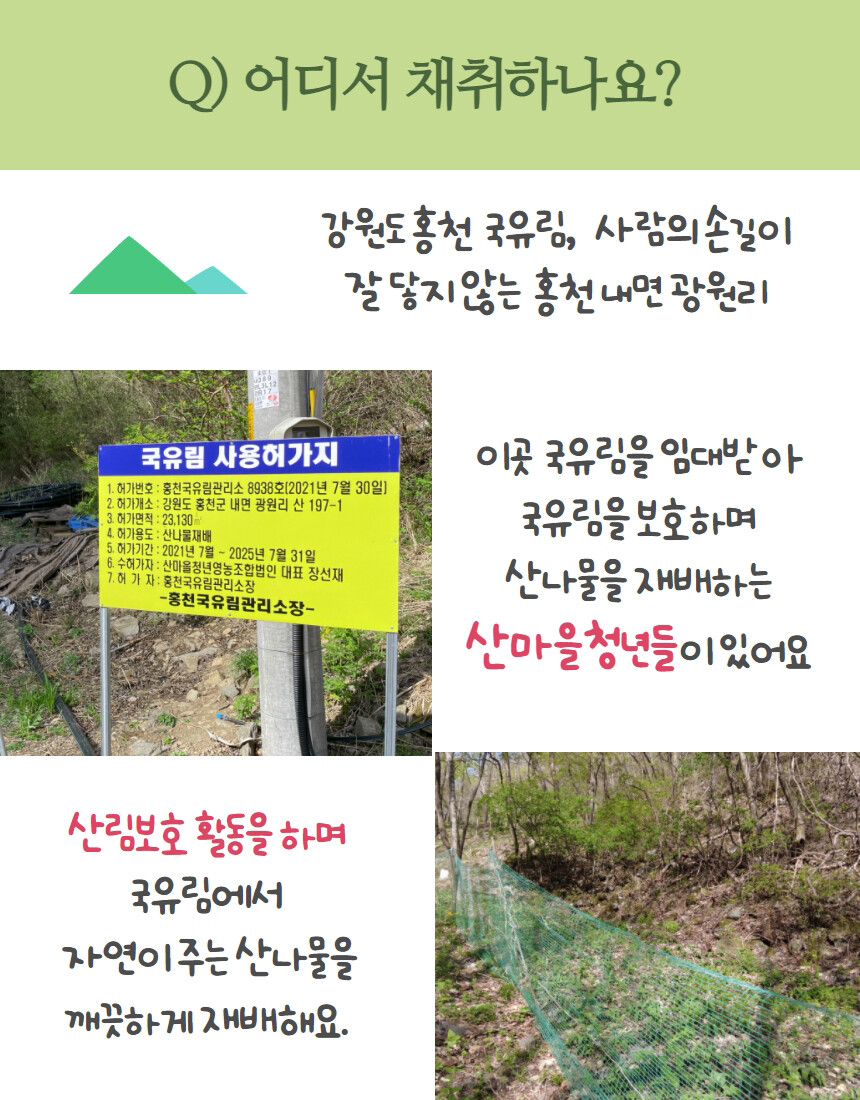 강원도 홍천 청정지역에서 자란 맛있는 명이나물 / 해발 600m 고랭지에서 자라 연하고 부드러워요!